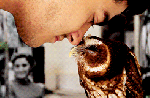 Baby Ezo ural owls are seen hanging out in a forest in Hokkaido, Japan